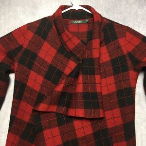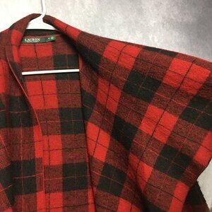 Lauren Ralph Lauren RL Womens Wool Wrap Coat Red Black Plaid - size Small