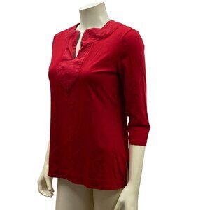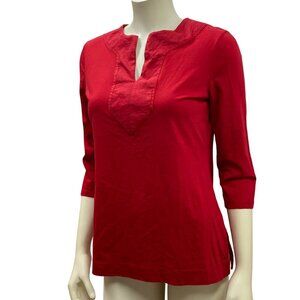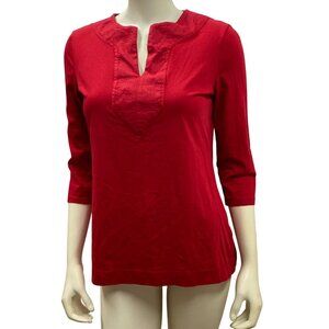Lauren Ralph Lauren Red 3/4 Sleeve V-Neck Womens Top Sm