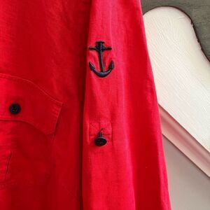 Lauren Ralph Lauren Red Anchor Linen Button Down Shirt sz 3X