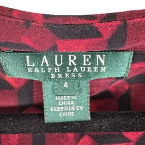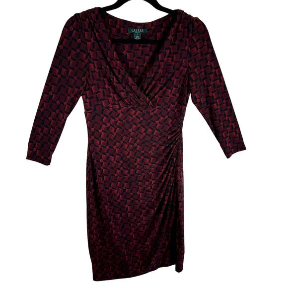 Lauren Ralph Lauren Red Black 3/4 Sleeve Faux Wrap Stretchy Jersey Knit Dress 4