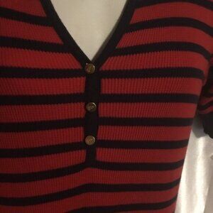 Lauren Ralph Lauren Red Stripped Half Short Sleeve Waffle Knit Henley Button Down Dress M