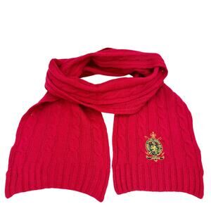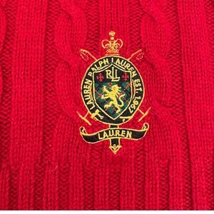 Lauren Ralph Lauren Red Cable Knit Cashmere Wool Blend Medallion Preppy Academia