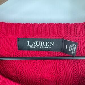 Lauren Ralph Lauren Red Cable Knit Sweater Gold Crest Logo Patch Size Large
