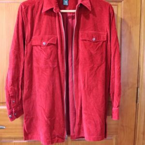 Step into classic American style with this Lauren Ralph Lauren red corduroy shacket. Designed with the perfect blend of blazer polish and chore-coat utility, this piece works beautifully layered for work or weekend wear.