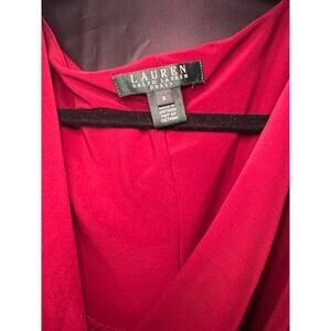 Lauren Ralph Lauren Red Cowl Neck Sheath Dress - Half Sleeve Ruched Side Size 8
