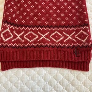 Lauren Ralph Lauren Red Knit Scarf Lambs Wool 9.5x55