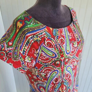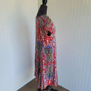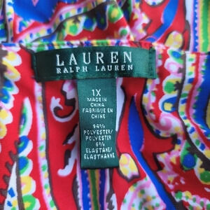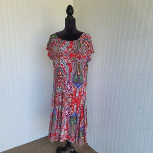 Lauren Ralph Lauren Red Paisley Print Short Sleeve Dress Sttetch Plus Size 1X