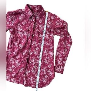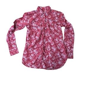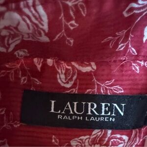 Lauren Ralph Lauren - Red Pocketed Curve Hem Floral Cuff Sleeved Button- XXS