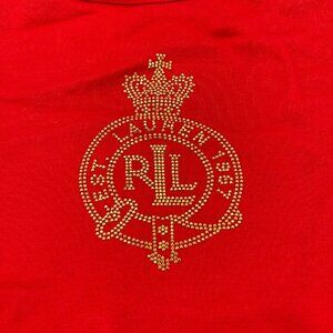 Lauren Ralph Lauren Red Rhinestone Crest T-Shirt XL Short Sleeve Vintage 90s