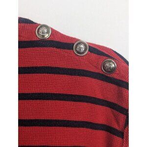 Lauren Ralph Lauren Red Striped Blue Long Sleeve Sweater Gold Crest Women's M