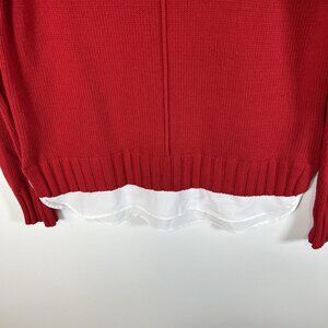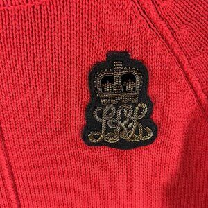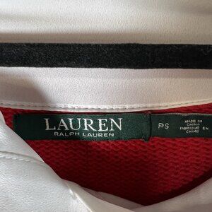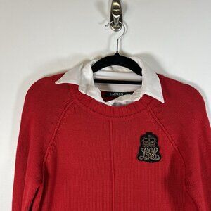 Lauren Ralph Lauren Red White Crest Sweater Crew Neck Knit Size Petite S