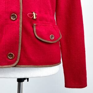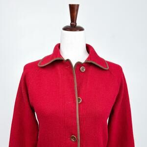 Lauren Ralph Lauren Red Wool Button-Up Collar Knit Jacket