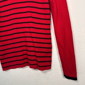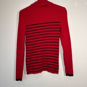Lauren Ralph Lauren Red and Black Striped Turtleneck Sweater Medium