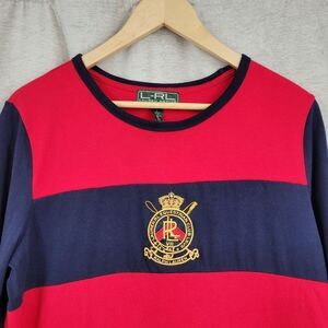 Lauren Ralph Lauren Red Navy Stripe Rugby Style Equestrian Club Tee Vintage