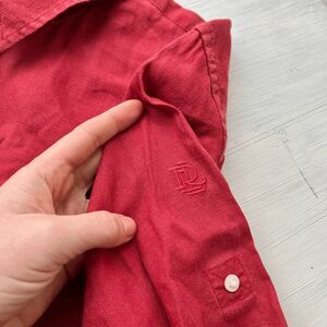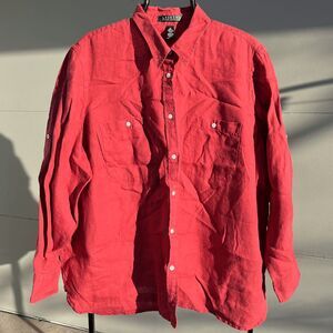 Lauren Ralph Lauren Redish Linen Button-Up Shirt 2X Embroidered Logo, Pockets