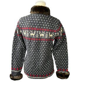 Lauren Ralph Lauren Reindeer Fair Isle Wool Faux Fur Trim Sweater Jacket Full Zi