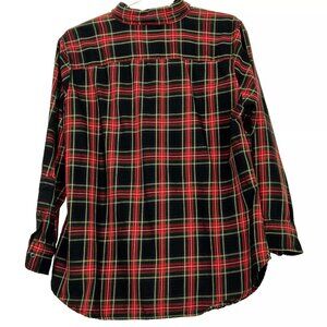 DESCRIPTION Classic button down in a gorgeous red and black plaid cotton broadcloth. Could be worn with a skirt and blazer for work or with jeans for a casual vibe. Cotton broadcloth. Machine wash and dry.