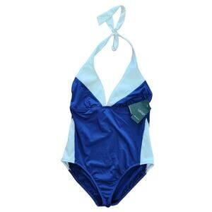 Lauren Ralph Lauren Retro Inspired One Piece Halter Swimsuit 10 Vacation Beach.