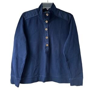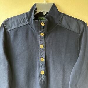 Lauren Ralph Lauren Ribbed Knit Henley Sweatshirt Navy Large Nautical Equestrian