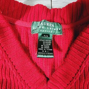 Lauren Ralph Lauren Ribbed V-Neck Sweater Red Womens Size P/P