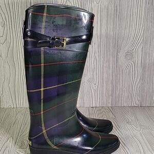 Lauren Ralph Lauren Rossalyn II Plaid Rain Boots Womens Size 8