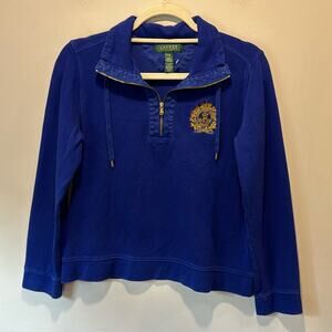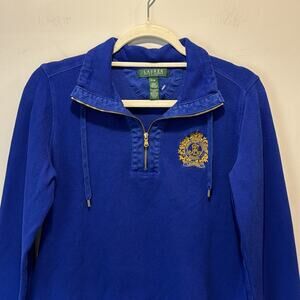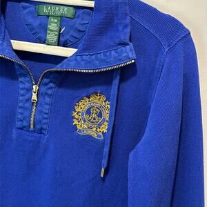 Lauren Ralph Lauren Royal Blue Embroidered 1/4 Zip Long Sleeve Pullover Sweater