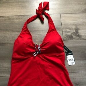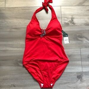 Lauren Ralph Lauren Ruby Red Beach Club Lace Up One Piece Swim 6