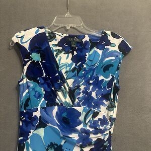 Lauren Ralph Lauren Ruched Faux Wrap Dress Size 6 Blue Floral Career Stretch