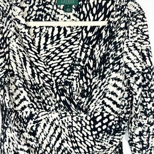 Lauren Ralph Lauren Ruched Faux Wrap Sheath Dress Size 10 Knee Length Abstract
