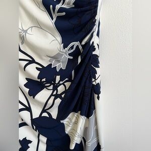 Sleeveless floral dress with a V-neck and gathers on the side for a touch of elegance and sophistication.