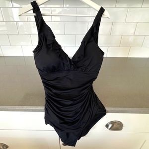 Lauren Ralph Lauren Ruffle Black One Piece Swimsuit sz 12-Washed, never worn