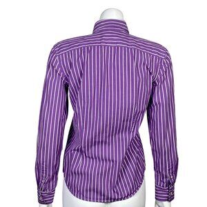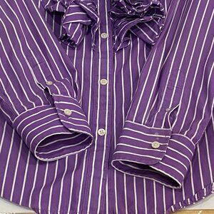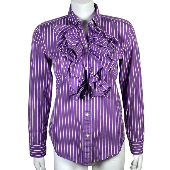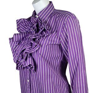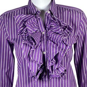 Lauren Ralph Lauren Ruffle Collar Button Up Shirt Womens S Cotton Purple Stripes