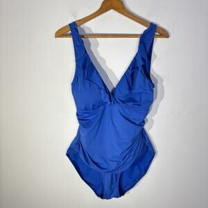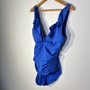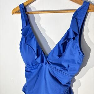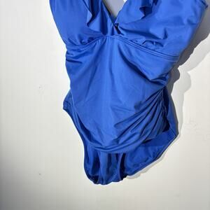 Lauren Ralph Lauren Ruffled Surplice One Piece Swimsuit Blue Tummy Control 14