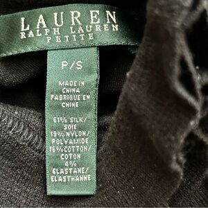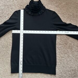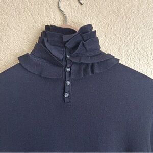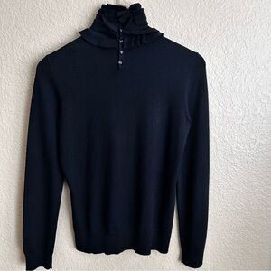 Good condition. Women’s Lauren Ralph Lauren turtleneck sweater. Features a ruffled turtleneck, ribbed sleeve cuffs and hem and 5 button closure in back.