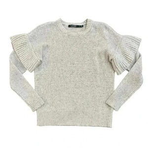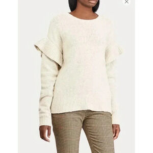 Lauren Ralph Lauren Ruffled Wool Alpaca Blend Sweater Size Medium Cream Multi