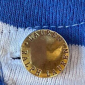 Lauren Ralph Lauren Sailor Tee has Boat Neck Gold Tone Buttons Blue White Stripe