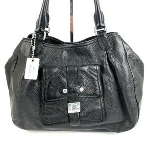 Lauren Ralph Lauren Satchel Handbag Black Leather Keychain Shoulder Bag Purse.