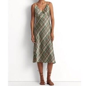 This green plaid satin midi dress from Ralph Lauren is gorgeous!
