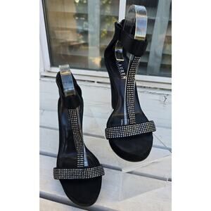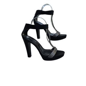 Lauren Ralph Lauren Satin Rinestone Platform Ankle Strap Heels 9 Black