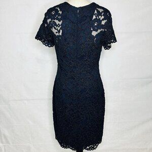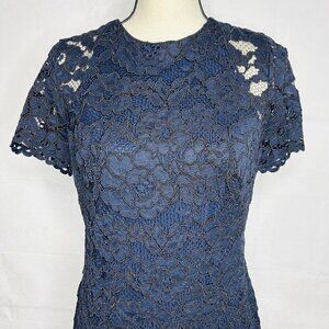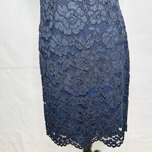 Lauren Ralph Lauren Scalloped Hem Lace Overlay Navy Blue Dress Size 10