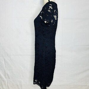 Lauren Ralph Lauren Scalloped Hem Lace Overlay Navy Blue Dress Size 10, 36% viscose, 32% cotton, 32% nylon.