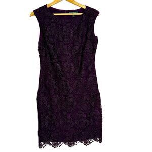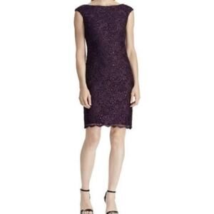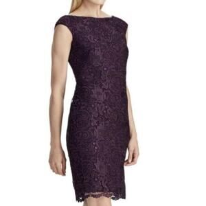 Lauren Ralph Lauren Scalloped Lace Sheath Dress Plum Size 12P