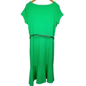 Lauren Ralph Lauren Shamrock Stretch Ponte Knit Ruffle Hem Belted Casual Dress L