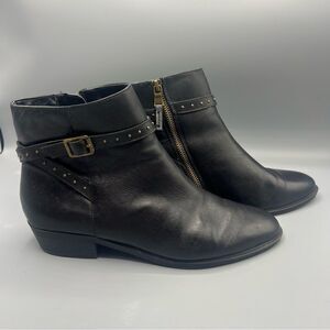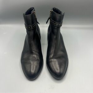 Lauren Ralph Lauren Shaw Black Leather Studded Buckle Heeled Ankle Boots. Very good pre-owned condition!