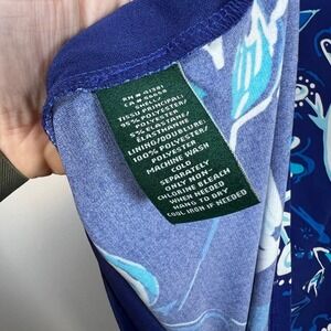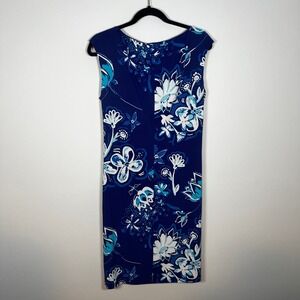 Lauren Ralph Lauren Sheath Dress 14 Floral Ruched Waist Cap Sleeve Casual Blue