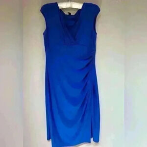 Lauren Ralph Lauren Sheath Dress Size 8 Cobalt Blue Ruched Knee Length Stretch