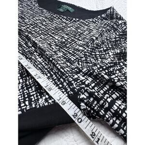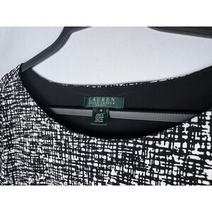 Lauren Ralph Lauren Sheath Dress Womens Sz 16 Black Geo Print ¾ Sleeve Ruched