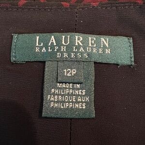Lauren Ralph Lauren Sheath Geometric Black & Red Rouched Ruffle Dress, Size 12P