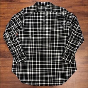 Lauren Ralph Lauren Sheer Button Up Tunic Black Plaid Oversized Top Size Medium