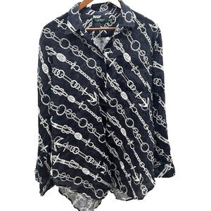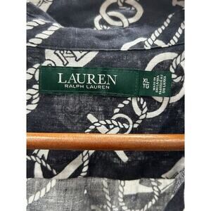 Lauren Ralph Lauren Shirt Chain Print Long Sleeves Button Up Linen Navy Blue XL